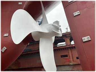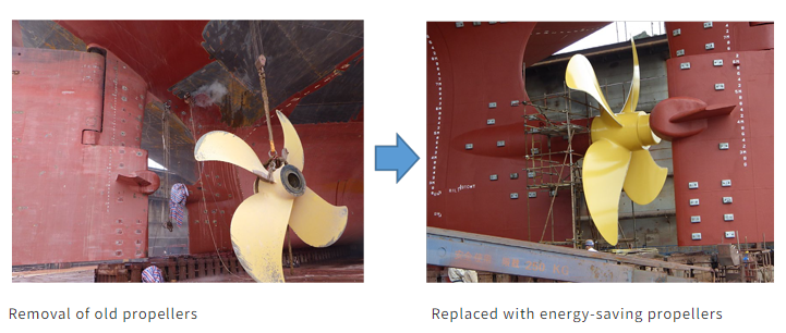 Propellers installed on ships are generally designed to provide optimum performance at normal engine output. On the other hand, in an environment where the ship is navigated at reduced speed to reduce CO2 emissions, fuel consumption can be reduced by replacing the propellers with energy-saving propellers that match the power output. We have converted replaced the propellers of two of our managed vessels to with energy-saving propellers.