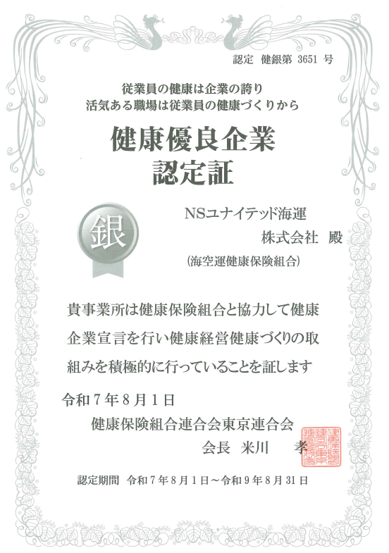 We declared its commitment to promoting employee health by making the “Declaration of a Healthy Company” in June 2024. As a result of our proactive efforts in health promotion, we were certified as a “Company with Excellent Health Management” and received the “Silver Certification” from the Tokyo Federation of Health Insurance Societies as of August 1, 2025